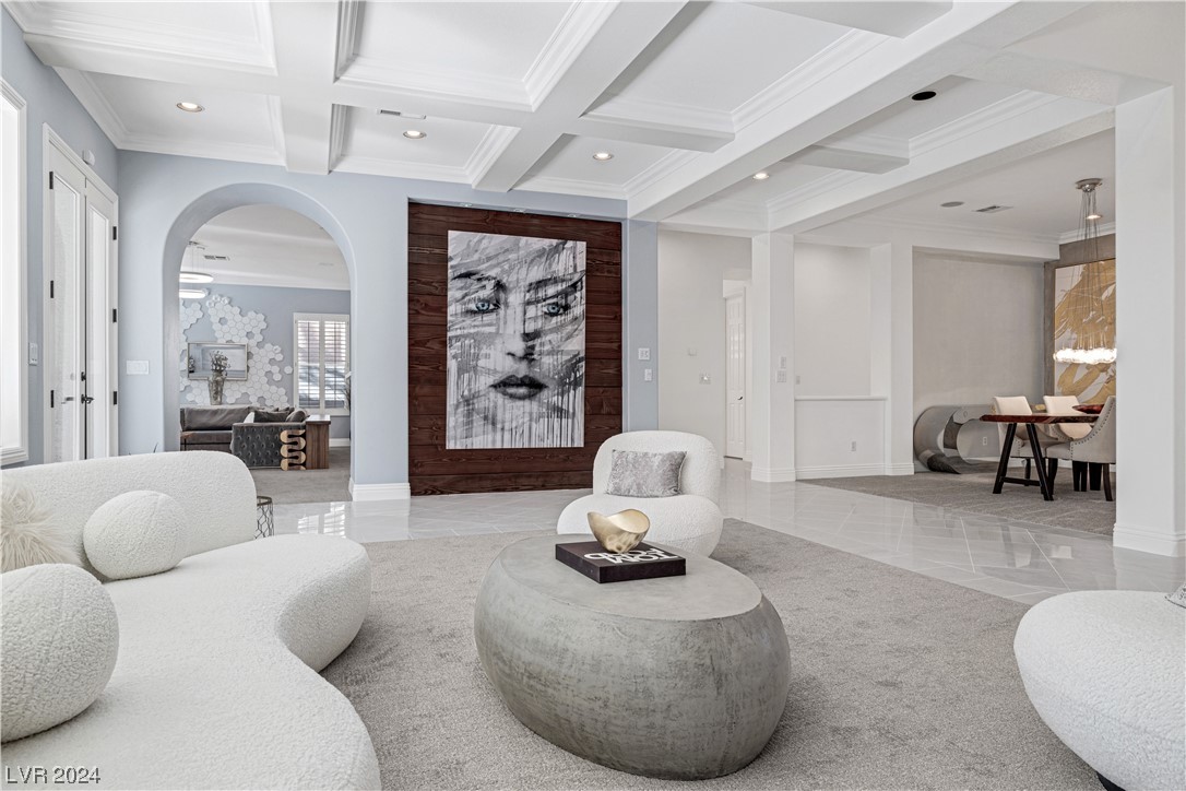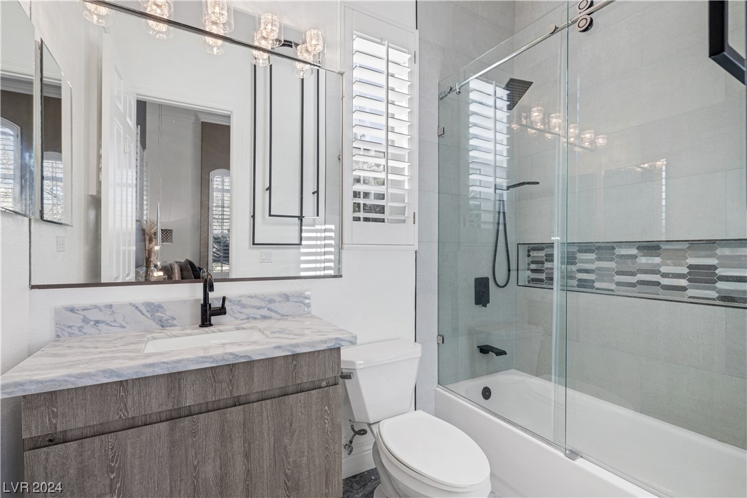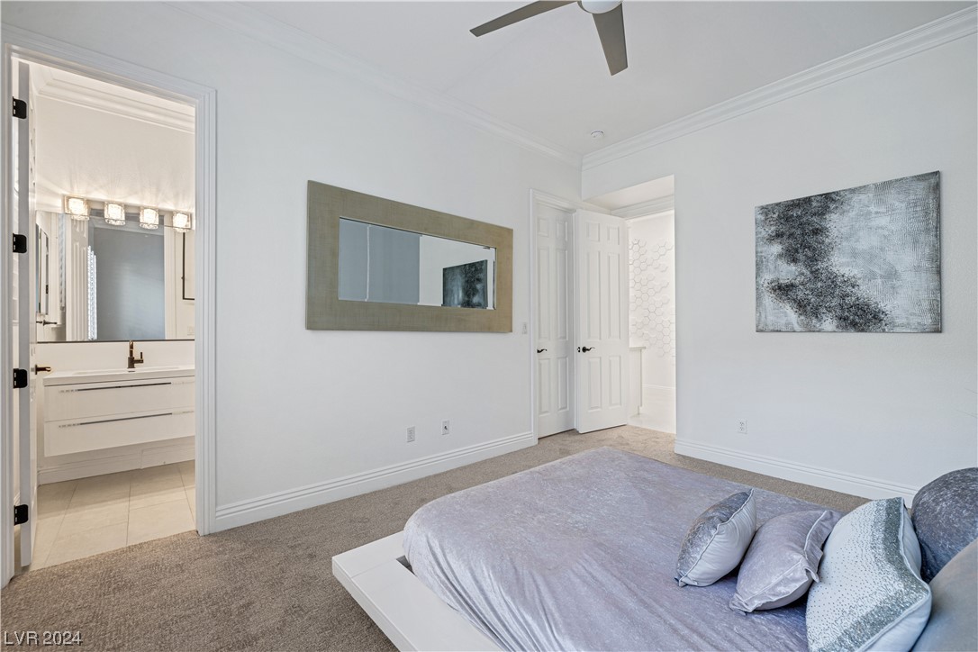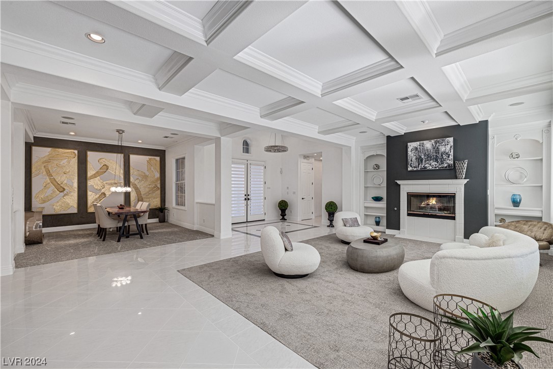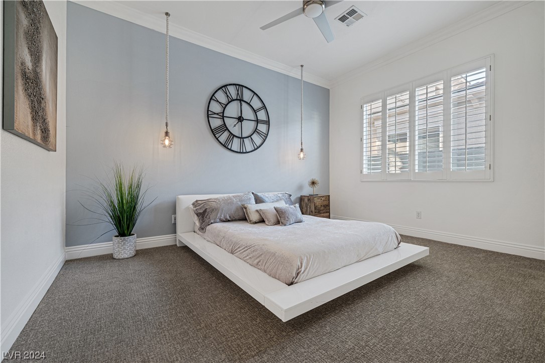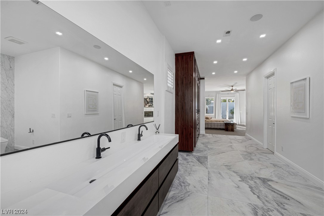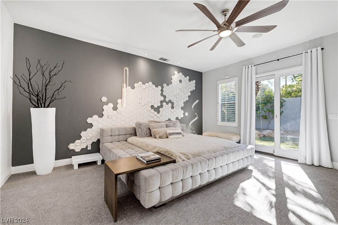 Step into guard-gated luxury at The Palisades in Summerlin! Come see this stunning single-story home, fully remodeled with with designer finishes, abundant natural light, an in-ceiling audio system throughout, four gas fireplaces, and a detached guest house tucked away in the large courtyard. The property is ideally situated next to the park on a corner lot with no neighbors on two sides. Indulge in the naturally shaded backyard, elegant gourmet kitchen, spacious living areas, and dreamy primary suite with spa-like marble-lined shower walls. Offering five bedrooms, 4.5 bathrooms, a 3-car garage, and an office spread over 4,079 sq ft, this home embodies a balance of comfort and style. Call William today to schedule a private tour of this breathtaking property.
